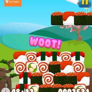 Snažte se z jednotlivých kousků sushi postavit co nejvyšší věž.