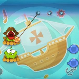Přeřezávejte lana tak, aby se bonbóny dostaly do tlamiček zelených tvorů.